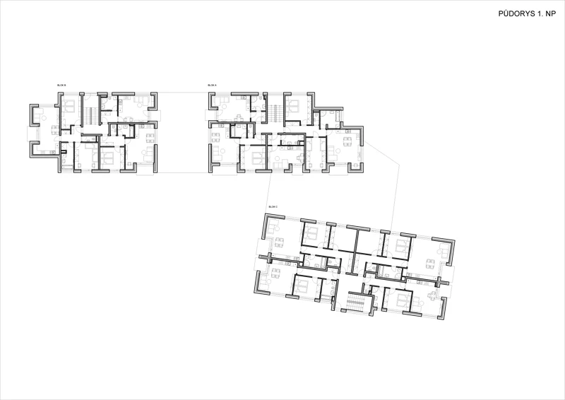 Obytný soubor se nachází v městské památkové zóně a svým vzhledem navazuje na tradiční baťovskou architekturu. Celek je rozdělen do tří menších objemů, které proporčně kopírují sousední “čtvrtdomky”. Směrem do rušné ulice jsou domy uzavřenější, otevírají se lodžiemi a francouzskými okny do klidného vnitrobloku. Použitím antracitových oken a zábradlí získává bytový soubor současnější vzhled. Vzhledem k jižně stoupajícímu svahu je objekt C umístěn výše než objekty A a B u ulice Mostní (objekt C má vyšší světlou výšku garáží). Díky zatravnění střechy podzemního podlaží působí soubor jako tři samostatné kvádry zasazené do svahu.